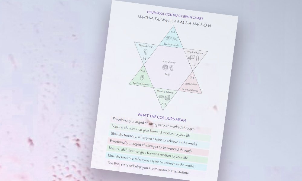 The Soul contract reading is an accurate Spiritual Map of your life based on the phonetic of your Birth name which holds the vibrations of your energetic essence. You will learn about your talents and gifts as well as the challenging aspects of your current incarnation. It also reveals your ultimate goals and purpose for this lifetime, the mission it has set to accomplish and where you are on this journey. This empowering map of your soul is a guiding reference towards an enlightened life and a great complement to all my therapies.